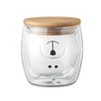 Caneca dupla em vidro borossilicato de parede com desenho de face de urso e tampa de bambu. Capacidade: 260ml. O bambu é um material natural, a cor do item, o tamanho e a impressão podem variar.