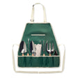 Ensemble de 7 outils de jardinage présentés dans un tablier. Comprend 1 paire de gants de jardinage, 2 fourches, 1 paire de ciseaux, 1 tire-bouchon et 2 truelles.