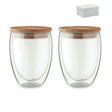Coffret en verre borosilicaté à double paroi avec couvercle en bambou et anneau en silicone. Capacité : 350 ml. Livré dans une boîte. Le bambou est un matériau naturel ; la couleur, la taille et le motif peuvent varier.