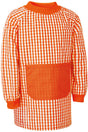Blouse enfant à col rond, sans boutons, avec une grande poche centrale. Confectionnée en maille unie fil-teint, elle présente un motif à carreaux en coton et polyester pour plus de durabilité et de résistance. Le col rond côtelé est élastique pour un enfilage facile et est doté d'un large ruban cousu dans le dos pour une suspension aisée. Les poignets côtelés sont élastiques pour un confort optimal. Une grande poche avant, unie ou contrastée, permet de garder tout à portée de main. Marquages possibles : sérigraphie, broderie, transfert. Idéale pour les bébés et les enfants de maternelle, elle se porte facilement par-dessus les vêtements.